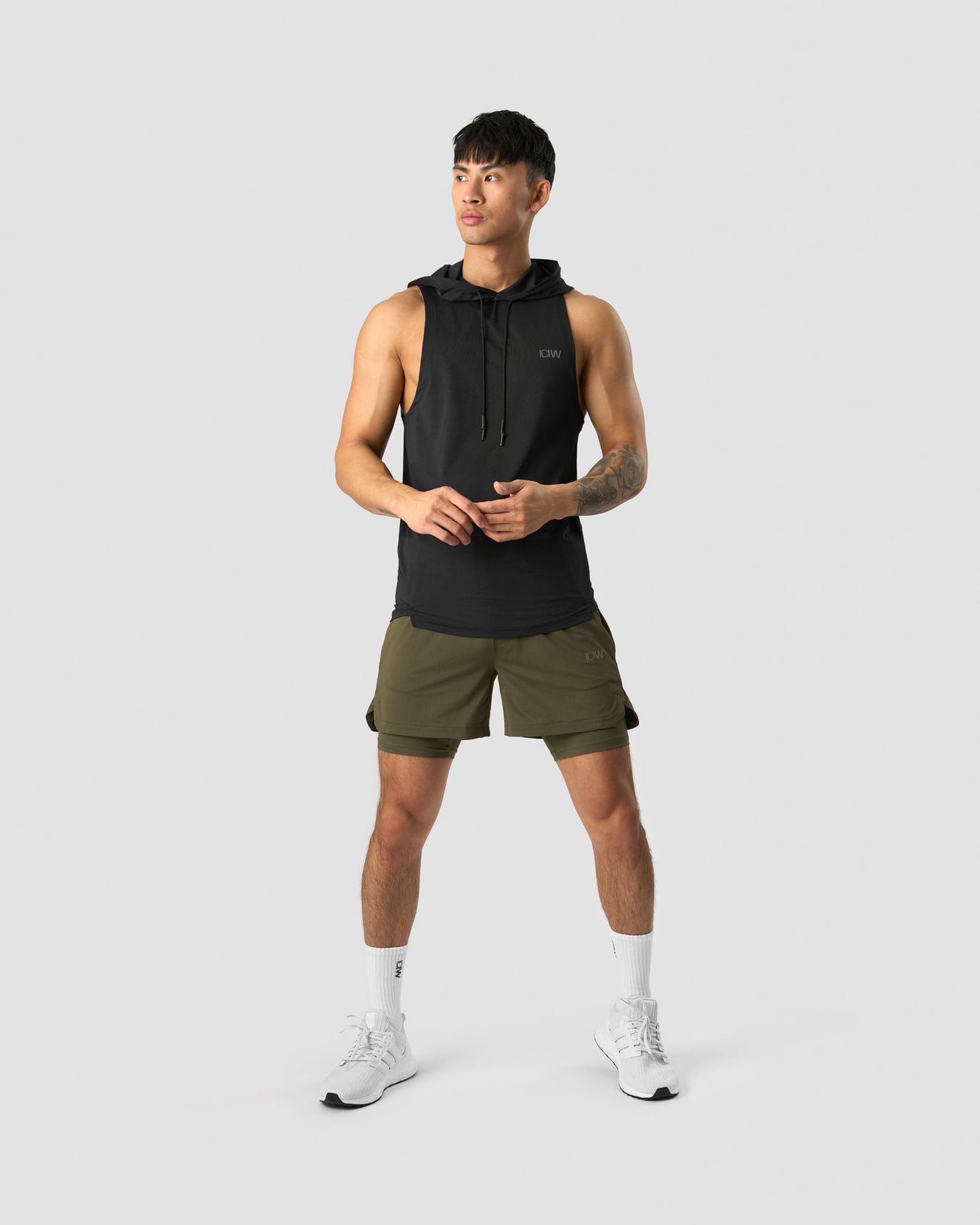 2-in-1-tyyliset salishortsit. Striden 2-in 1-shortsit on tarkoitettu salille ja rankkoihin treeneihin. Ulommat shortsit on tehty kevyestä vohelikankaisesta verkkokankaasta ja sisemmät venyvästä ja joustavasta materiaalista. Niissä liikkuminen on vaivatonta ja häiriötöntä. Shortseissa on kaksi avointa taskua ja piilovetoketjulinen tasku sekä selkäpuolella lenkki, johon voit kiinnittää pyyhkeen tai paidan. ICIW-logo edessä. Vakioistuvuus. Smokey Brown: 18.5 cm sisäshortsit. Army: 18.5 cm sisäshortsit. Sisäshortsit: 75 % polyesteriä, 25 % elastaania, sisäsauma 22 cm. Ulkoshortsit: 90 % kierrätettyä polyesteriä, 10 % elastaania, sisäsauma 13 cm.