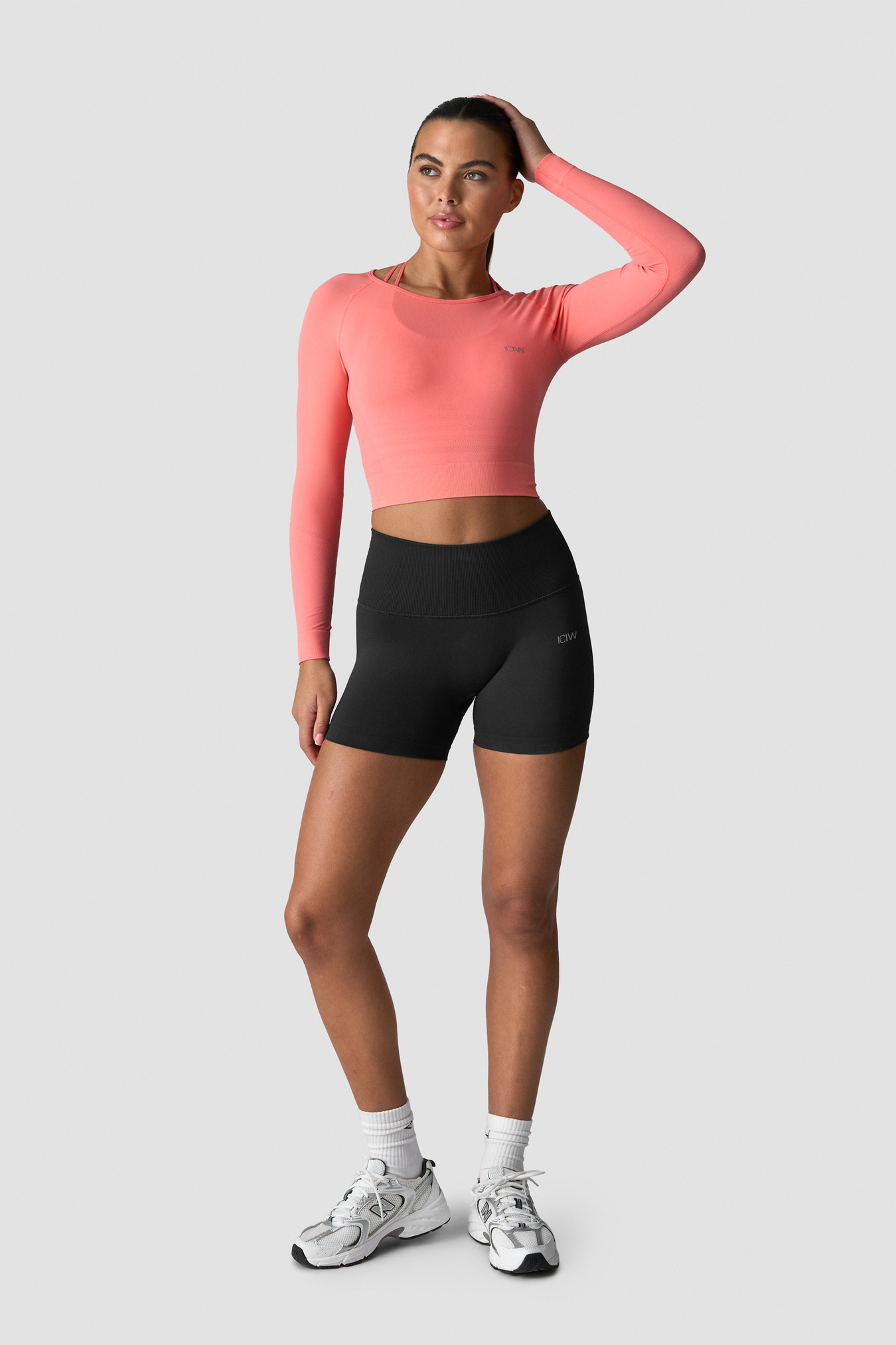 Crop Top, joka on kaiken arvoinen ja vähän enemmänkin! Tämä paita istuu päälle kuin valettu, siinä on miellyttävä resori joka pitää paidan paikallaan ja hienostunut, yksinkertainen design. Kankaan tyylikkäät yksityiskohdat kohottavat designiä entisestään! Paita on valmistettu uusinta seamless-tekniikkaa käyttäen ja käyttämämme materiaali on neljään suuntaan joustavaa, mikä ei ainoastaan paranna istuvuutta ja laatua, vaan lisää myös liikkuvuuttasi treenin aikana. Lisäksi seamless-tuotteiden tuotannolla on pienempi vaikutus ympäristöön, koska kangasjätteiden määrä on minimoitu ja näin ollen myös materiaalin tarve vähenee. Paidan materiaali on kestävää ja helppohoitoista, säilyttää värinsä useista pesuista huolimatta eikä nukkaannu. 92% kierrätettyä nailonia, 8% elastaania